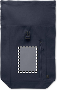 Rolltop-ryggsäck med kardborrestängning i 390 gr/m² återvunnen bomull (80%) och återvunnen polyester (20%). Ficka med dragkedja på framsidan.