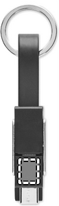 Nyckelring med 4-i-1 laddningskabel. In/utgång: Type-C x2, Type-A, Micro USB.