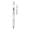 Penna med TWS rengöringsset. Den har ett rengöringsset för True Wireless Stereo (TWS) öronsnäckor: metallspets, svamp och borste. Blått bläck.