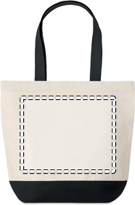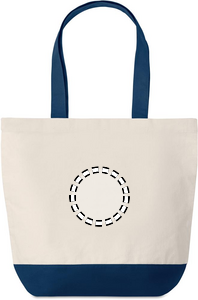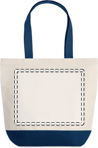 Strandväska i 170gsm bomull med kontarst färgad botten och handtag. Innerficka