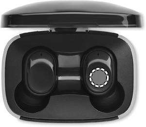 Set med 2 stycken True Wireless Stereo (TWS) 5.1 öronsnäckor med mikrofon och inbyggt 25 mAh-batteri. Speltid ca 3 timmar. Automatisk parning. Inkluderar en mikro-USB-laddningskabel och en 200 mAh- laddningsstation.