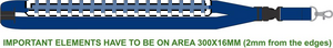 Nyckelland med metallkrok, avtagbart spänne och säkerhetspänne i nacken. 20 mm bred.