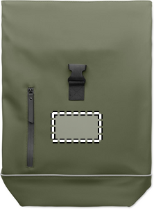 15'' rolltop laptop-ryggsäck i mjuk PU med vadderad rygg och bottenförstärkning med reflexband. Vattentät frontficka med dragkedja. foder i 210D RPET-polyester.