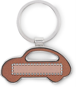 Bilformad nyckelring i metall med inlägg av återvunnet PU-läder.