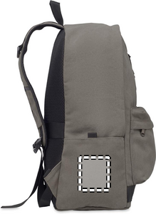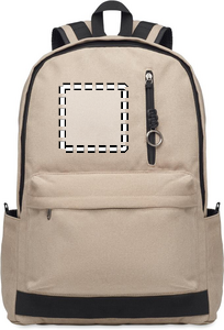 15'' dataryggsäck i återvunnen bomull av textilier. Stor ficka med dragkedja framtill med innerfack för bärbar dator. Liten ficka med blixtlås framtill. Två sidofickor. Vadderade rygg- och axelremmar, ryggpanel och botten. 450 gr/m².