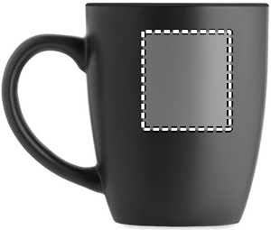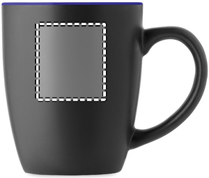 Svart matt keramikmugg med färgad glaserad insida. Kapacitet: 290 ml. Med en speciell beläggning för lasergravyr