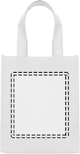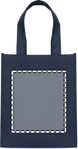 Liten present- eller goodiebag i RPET non-woven med korta handtag och bottenkil. 80 gr/m².