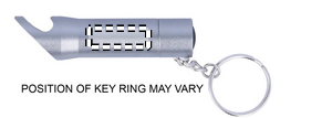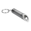 LED ficklampa i metall med nyckelring och flasköppnare. Batteri ingår.
