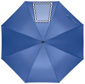 27 tums stormsäkert paraply med automatisk öppning i 190T RPET pongee. Skaft och ribbor av glasfiber. Handtag av vetestrå och återvunnet ABS. Tips och topp i plast.