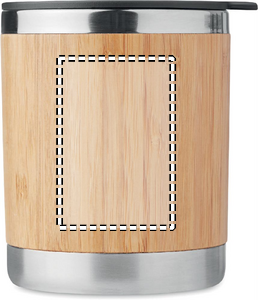 Mugg med dubbelvägg i rostfritt stål med bambu hölje och stängning för drickshålet. Kapacitet 250 ml.