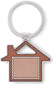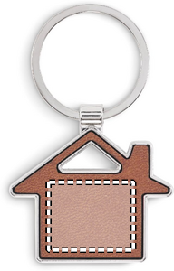 Husformad nyckelring i metall med inlägg av återvunnet PU-läder.