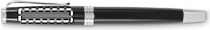 Set med vridbar kulspetspenna och rollerballpenna i återvunnet rostfritt stål. Blått respektive svart bläck. Levereras i svart låda.