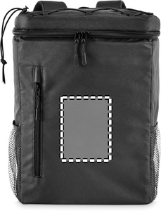 Kylryggsäck i 600D RPET-polyester med vadderade justerbara axelremmar, PEVA-foder och 5 mm PE-skum. Inklusive frontficka och två sidofickor i nät. Volym: 9L.