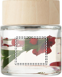 Glasburk med doftdiffusor i trä med blomdekoration inuti, med 6 rörstänger. Doft: vanilj. Volym: 100 ml.