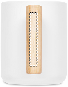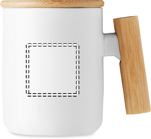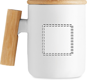 Porslinsmugg med lock och handtag av bambu. Kapacitet: 380 ml.