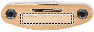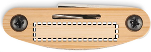Multifunktionellt fickverktyg i rostfritt stål med bambuöverdrag. 11 funktioner. Innehåller: insexnyckel, skiftnyckel, hylsförlängare, stjärnskruvmejsel och hylsnyckel.
