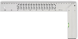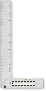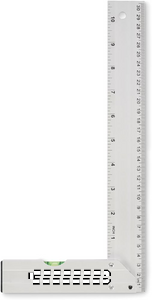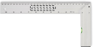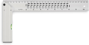 Vinkelhake i aluminium med vattenpass. Linjal 30 cm.