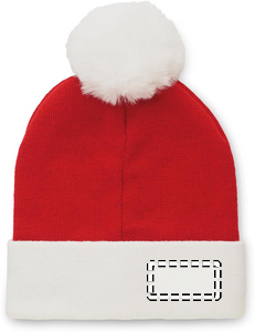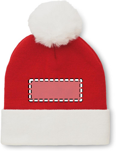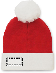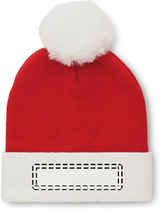 Stickad julmössa med uppvik/bord och tofs i PET-polyester.
