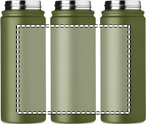 Dubbelväggig flaska i rostfritt stål med drickpip på locket och bärhandtag. Kapacitet: 500 ml.