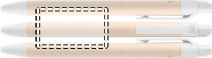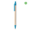 Bläckpenna med tryckknapp ch skaft av återvunnen mjölkkartong och PLA-delar (i 100 % biologiskt nedbrytbar majs). Blått bläck.