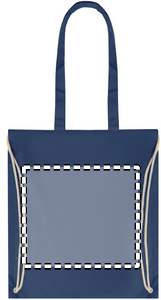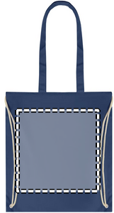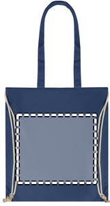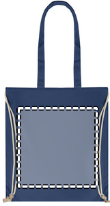 Kombinerad kasse och gymnastikpåse i bomullscanvas med långa handtag och dragsko somkan bäras som ryggsäck. Kvalité: 220 g/m2.