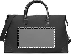 Weekendväska i 340 gr/m² canvas med PU-detaljer. Fodret är i RPET 210D. PU-detaljerna ger denna väska ett mer premiumutseende. Det är en perfekt väska för en kort semester eller en stadsresa. Bär väskan i de korta handtagen eller använd de medföljande justerbara och avtagbara axelremmen. Perfekt storlek för handbagage.