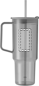Mugg i RPET med sugrörslock inklusive sugrör i PP. Volym: 1200 ml.