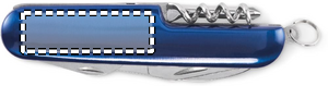 Fickkniv med flera funktioner i återvunnet aluminium. 5 funktioner: Knivblad, kapsylöppnare, skruvmejsel, korkskruv och burköppnare.