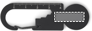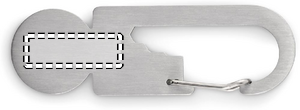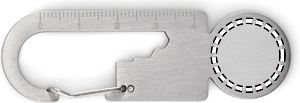 Nyckelring med 1€ kundvagnsmynt i återvunnet rostfritt stål (90% återvunnet och 10% rostfritt stål) med ett multifunktionsverktyg som inkluderar flasköppnare, linjal och sexkantsnyckel 5,5 mm, 7 mm och 8 mm.