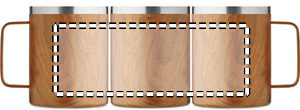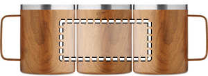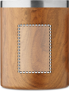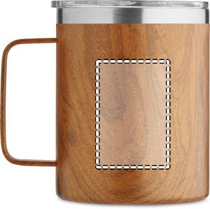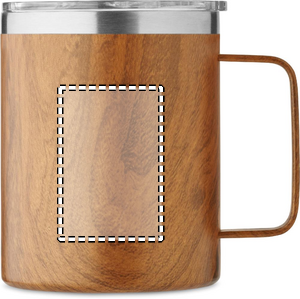 Dubbelväggig mugg i återvunnet rostfritt stål (90 % återvunnet rostfritt och stål 10 % rostfritt stål) med träutseende och skjutbart lock med sipphål. Volym: 300 ml.