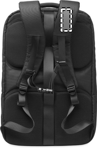 Stor 17-tums dataryggsäck för laptop i 600D RPET polyester. Har flera fack som ett huvudfack för kläder, två vadderade fack för laptop och surfplatta med mera. Vadderad ryggpanel, axelrem och handtag.