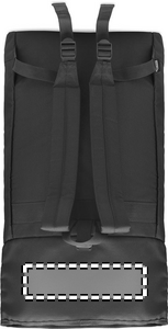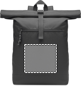 Ryggsäck i 600D RPET polyester med rullstängning, vadderad rygg och förstärkning i botten. Ficka med dragkedja på framsidan. Fodret är i RPET 210D RPET.
