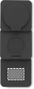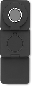 3 i 1 hopfällbar laddningsstation i gummerad återvunnen ABS. Den innehåller en magnetisk trådlös laddare 15W, smartwatch-laddare (endast Apple®) och TWS laddare.