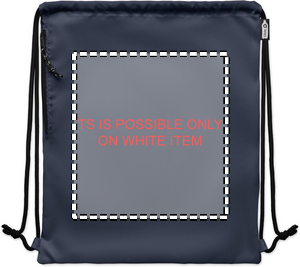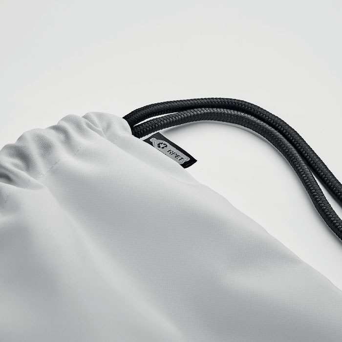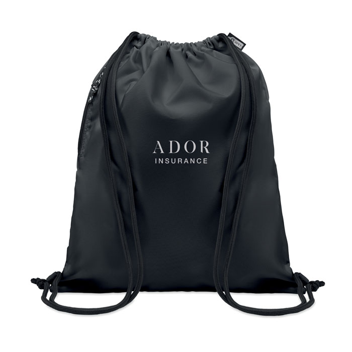 Stor Gympapåse i 300D RPET-polyester med sidoficka med dragkedja på utsidan. Tjocka snören.
