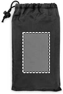 Lätt strandmatta i 210T polyester som mäter 200x210 cm. Inklusive 4 svarta krokar och en matchande påse för enkel transport.