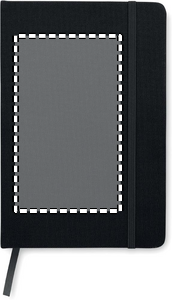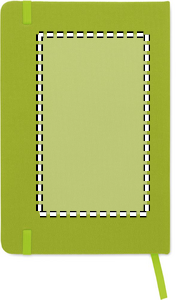 A5 anteckningsbok med 600D RPET hårt omslag och 80 linjerade sidor i återvunnet papper med ett elastiskt band och läsband.