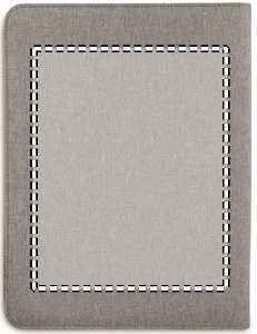 Konferensmapp A4-storlek i tvåtons polyester. Flera praktiska fack för visitkort, dokument och penna. 20-sidigt linjerat anteckningsblock ingår.