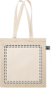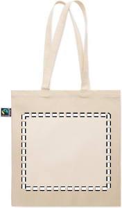 Kasse i Fairtrade-bomull med långa handtag och vikter. 180 gr/m². Denna produkt är certifierad enligt OEKO-TEX® STANDARD 100.