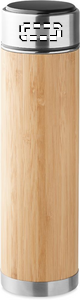 Vakuum flaska/termos i rostfritt stål- och bambu med dubbelvägg. Flaskan har en LED-touchskärm med termometer inbyggd i locket, så att ser tempraturen på innehållet. Det har också en thesil inuti, så du kan göra en ny kopp tee med din favorit smak. 1 utbytbart CR2032 -batteri ingår. Kapacitet på 480 ml. Läckagefri. Bambu är ett naturligt material, så det kan finnas små variationer i färg och storlek per artikel, vilket kan påverka det slutliga märkresultatet.