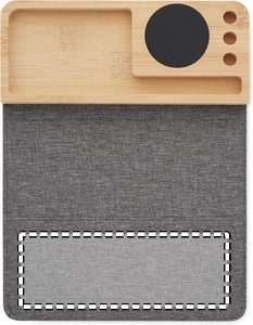Trådlös laddare och skrivbordsorganisatör i bambu med telefonställ, 3 pennhållare och vikbar RPET-musmatta. Uteggekt: DC 9V/1,67A (15W).