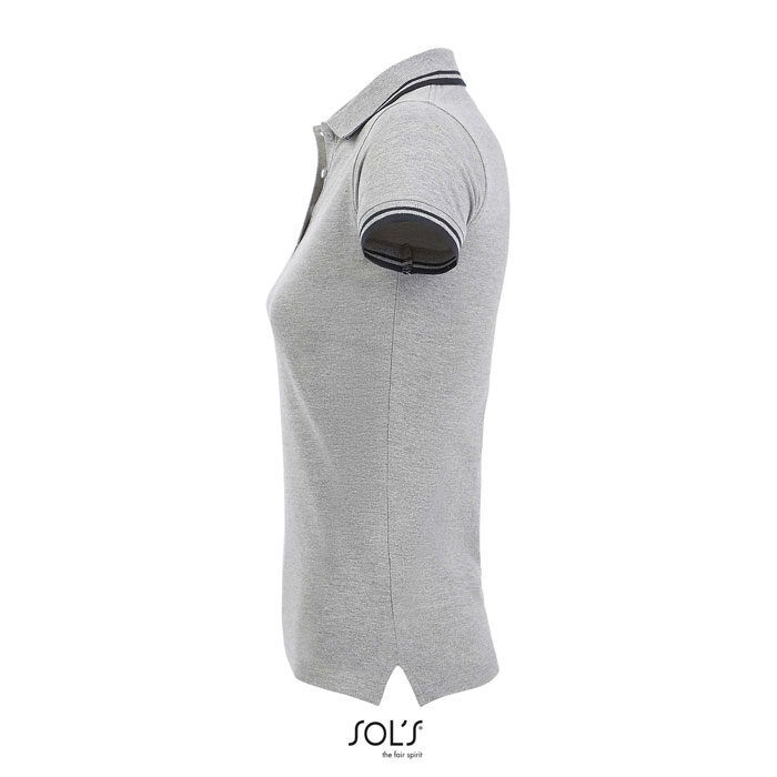 SOL'S PASADENA DAM, TENNISTRÖJA FÖR DAMER, 100 % ringspunnen bomull PIQUÉ 200, Krage och ärmslut i ribbad 1x1, Förstärkningstejp på halsen, Korta ärmar, Kontrastfärgade ränder på krage och ärmslut, Knäppning med 3 ton-i-ton-färgade knappar, Kroppsnära skärning, Skuren och sydd, Slitsar i sidorna, Extra knapp på insidan av sömmen för matchande storlekar, se storlekstabellen i avsnittet om produktdokumentation.