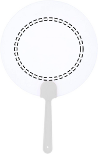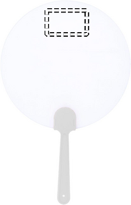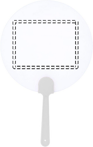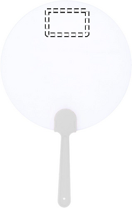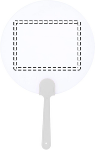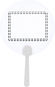 Manuell fläkt med formstabil, frostigt genomskinlig yta. Likt en solfjäder viftar du på den för att sätta luften i rörelse och därmed svalka dig. Stor exponeringsyta för budskap vid varma evenemang.