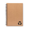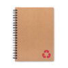 Ringbunden anteckningsbok med omslag i återvunnen kartong. 140st linjerade mineralpapperssidor (70 ark). Mineralpapper är tillverkat av kalciumkarbonat och HDPE (polyetenharts) som används som bindemedel. Den är vattentät och resistent mot fett.