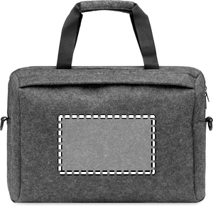15-tums laptopväska i RPET-filt med ett invändigt huvudfack och en framficka med dragkedja. Med avtagbar och justerbar axelrem. Hållare för transportvagn på baksidan.