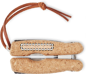 Fickkniv i rostfritt stål med flera funktioner, korkskydd och PU-handtag. 9 funktioner, innehåller: Tång, 2 öppnare, skruvmejsel med Philips-bits, sågblad, kniv, fil och skruvmejsel med platt bits.
