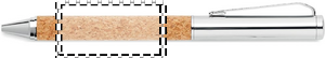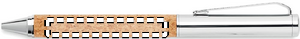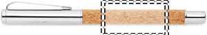 Pennset i metall med kropp i kork. Även presentasken är tillverkad i kork. Kulspetspennan har vridmekanism med blått bläck och Rollerball pennan svart bläck.