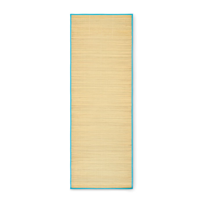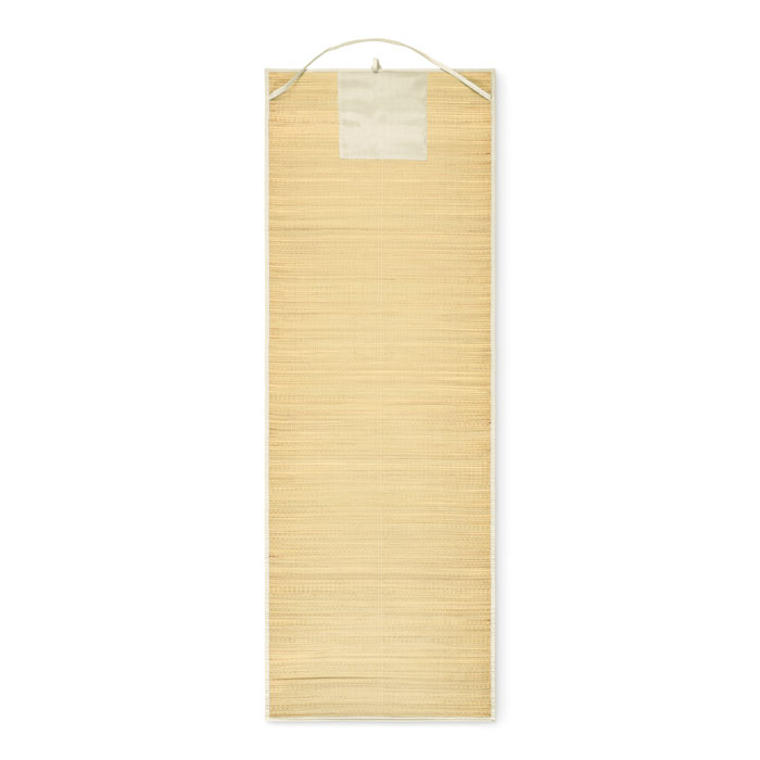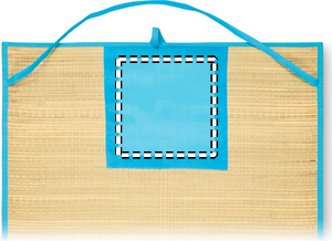 Hoprullbar liggunderlag för stranden bestående av naturstrå med bärrem av polyester.