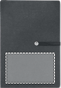 Anteckningsbok i återvunnet material, 70 sidor papper, post-it block och notisar. Elastiskt band runt boken och en penna med ABS-spets. Svart bläck.