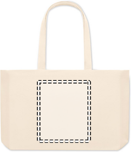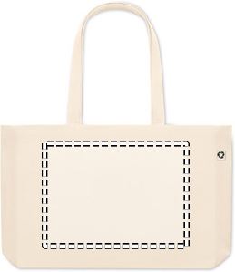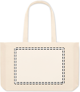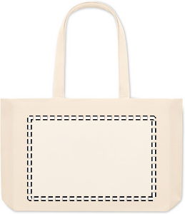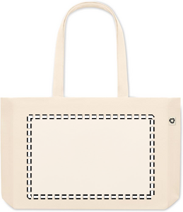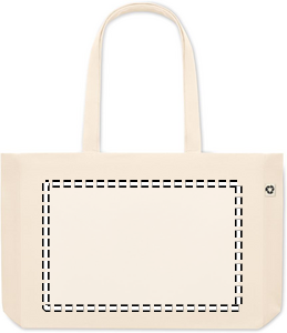 Stor kasse som passar shoppingen eller strandväska. Gjord av återvunnen bomullscanvas. Denna väskan har långa handtag så att den kan bäras i handen eller över axeln för att hålla händerna fria. Sydd bottnen gör den mycket användbar för att ta med dig många saker till stranden eller när du handlar mat. Väskan är tillverkad av 50 % bomull och 50 % återvunnen bomull. 280 gr/m²