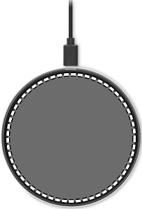 Trådlös laddare 10W i aluminium med glas på toppen. Anslut enheten till din dator, lägg smartphone på den och låt den laddas. Blått ljus när den laddas. Uteffekt: DC 9V/1.1A.